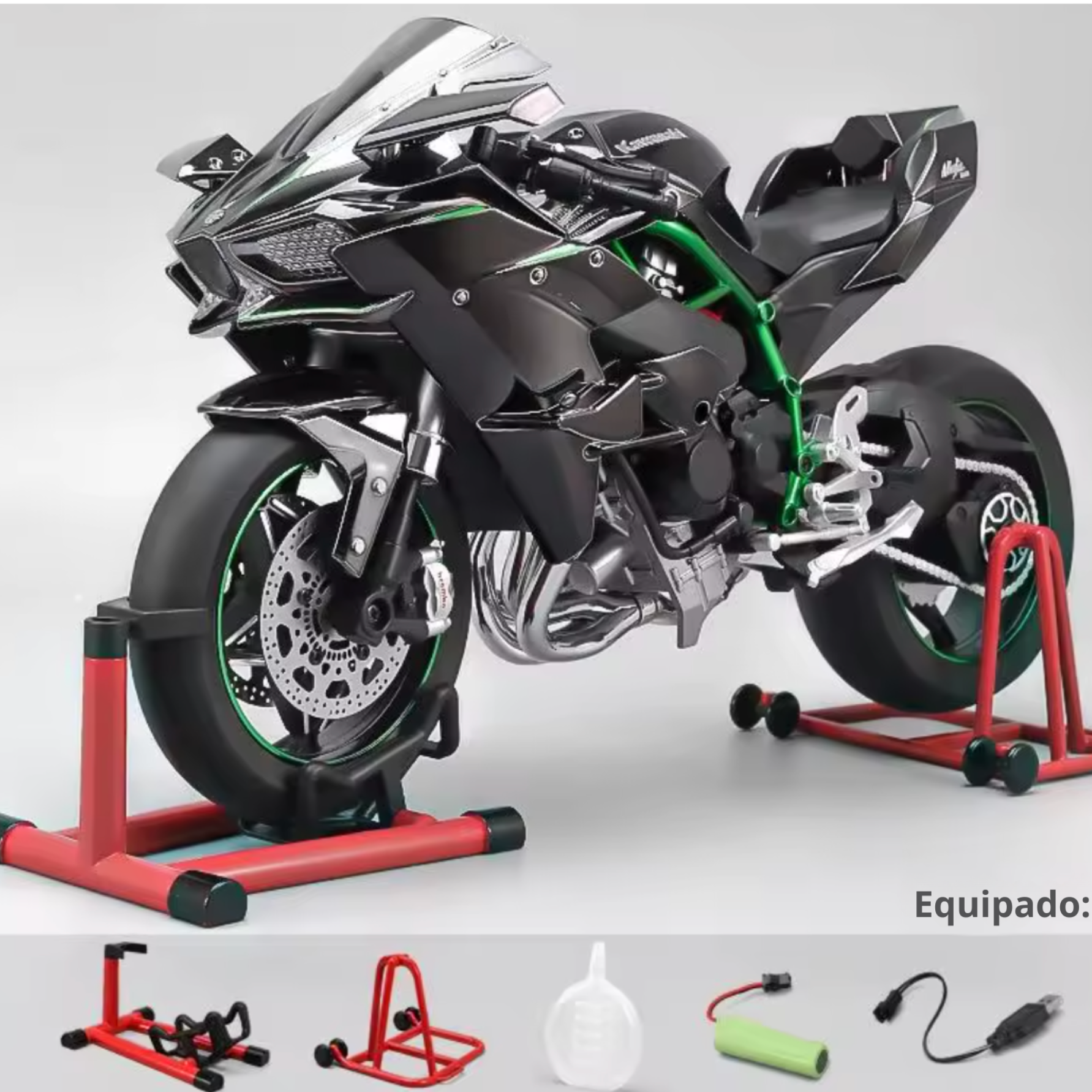 Kawasaki Ninja H2R 1:9, con motor interactivo, luces y escape funcional.